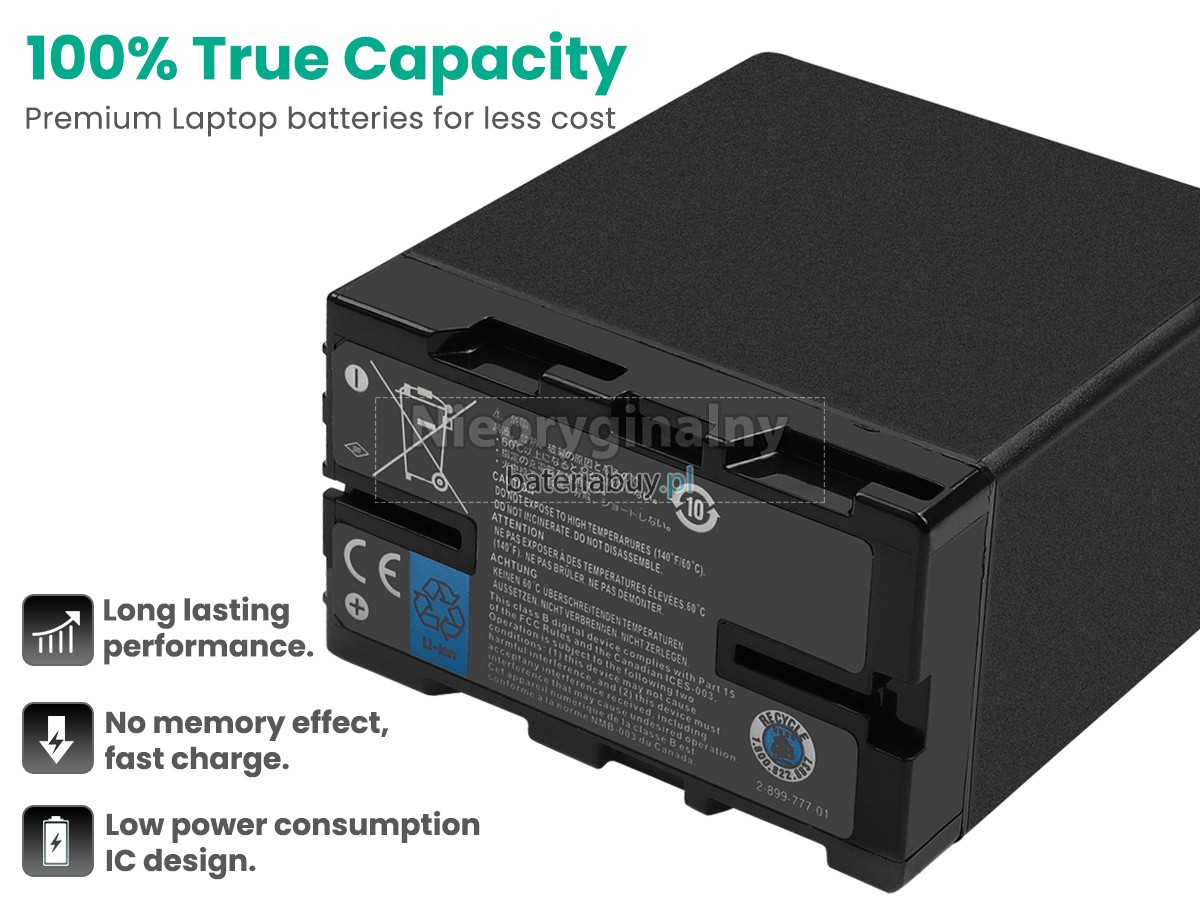 - Wymienna bateria Sony FS7M2 wykorzystuje najwyższej jakości ogniwa litowo-jonowe i komponenty, zapewniając szybsze ładowanie oraz dłuższą żywotność.