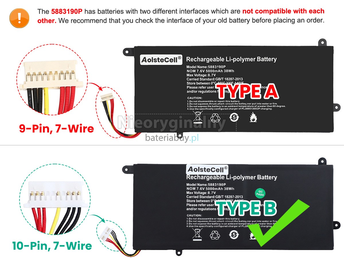 - Wymienna baterii w laptopie Vastking 5883190P wykorzystuje najwyższej jakości akumulatory litowo-jonowe i komponenty do szybszego ładowania i dłuższej żywotności.