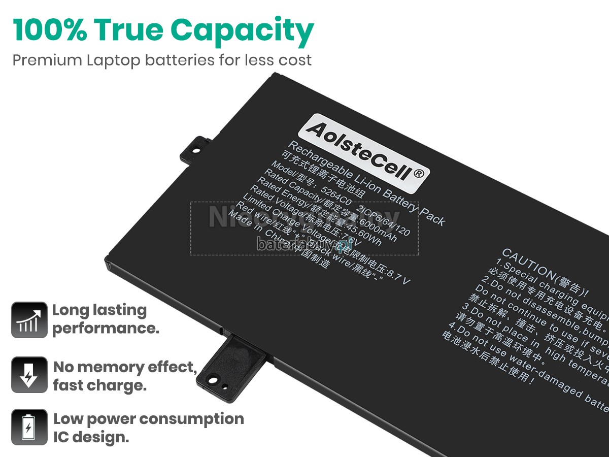 - Wymienna baterii w laptopie AolsteCell 5264C0 wykorzystuje najwyższej jakości akumulatory litowo-jonowe i komponenty do szybszego ładowania i dłuższej żywotności.