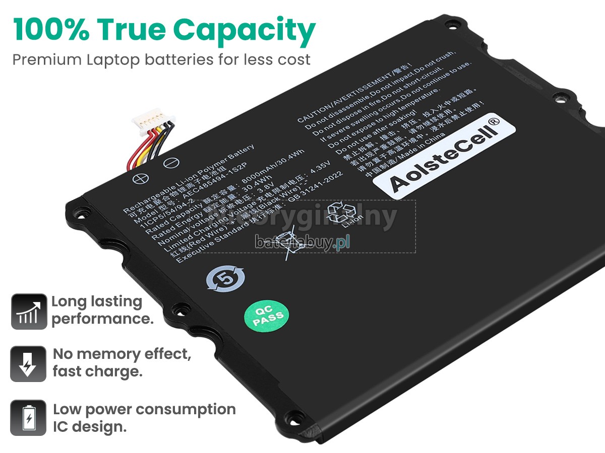 - Wymienna baterii w laptopie AolsteCell AEC485494-1S2P wykorzystuje najwyższej jakości akumulatory litowo-jonowe i komponenty do szybszego ładowania i dłuższej żywotności.