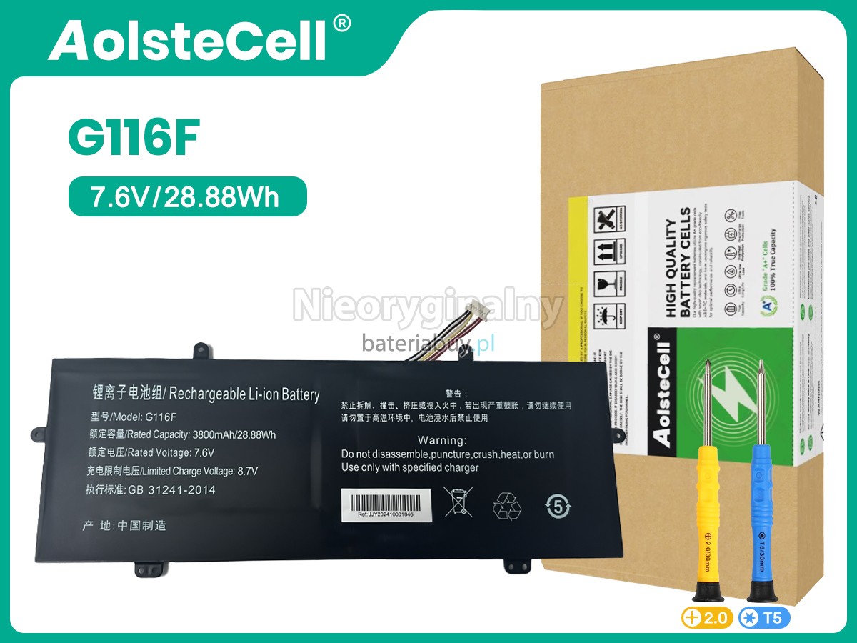 - Wymienna baterii w laptopie AolsteCell G116F wykorzystuje najwyższej jakości akumulatory litowo-jonowe i komponenty do szybszego ładowania i dłuższej żywotności.