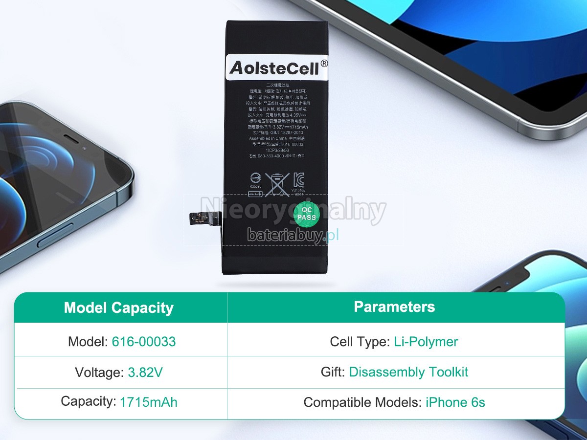 - Wymienna bateria Apple 616-00033 wykorzystuje najwyższej jakości ogniwa litowo-jonowe i komponenty, zapewniając szybsze ładowanie oraz dłuższą żywotność.