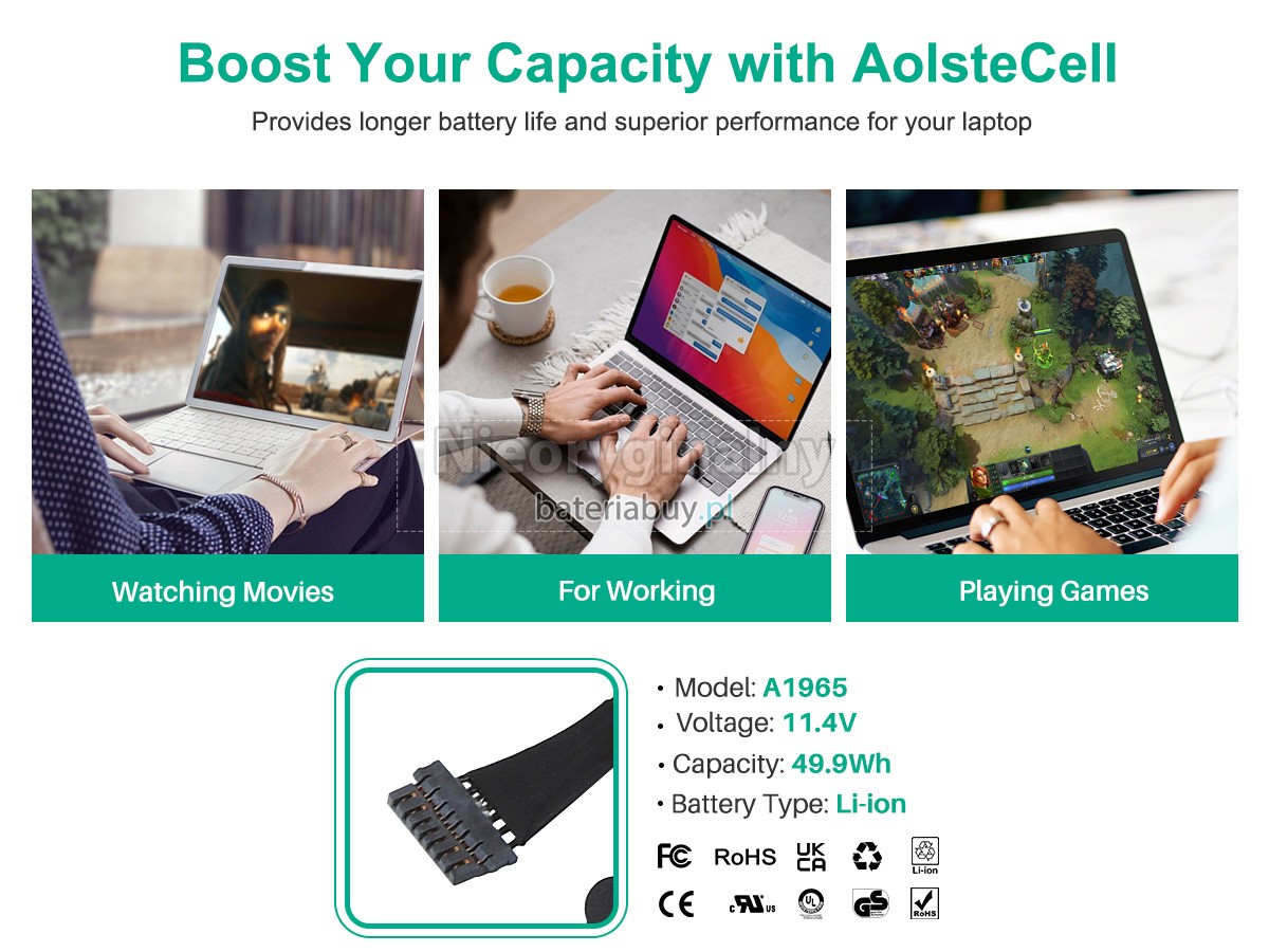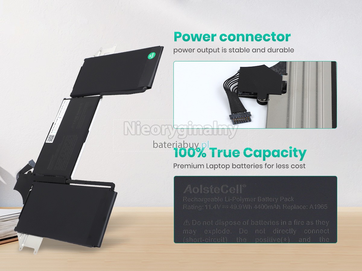 - Wymienna baterii w laptopie Apple A2179 EMC 3302 wykorzystuje najwyższej jakości akumulatory litowo-jonowe i komponenty do szybszego ładowania i dłuższej żywotności.