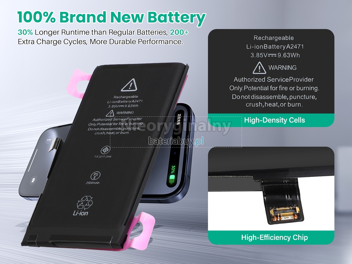 - Wymienna bateria Apple A2399 EMC 3541 wykorzystuje najwyższej jakości ogniwa litowo-jonowe i komponenty, zapewniając szybsze ładowanie oraz dłuższą żywotność.