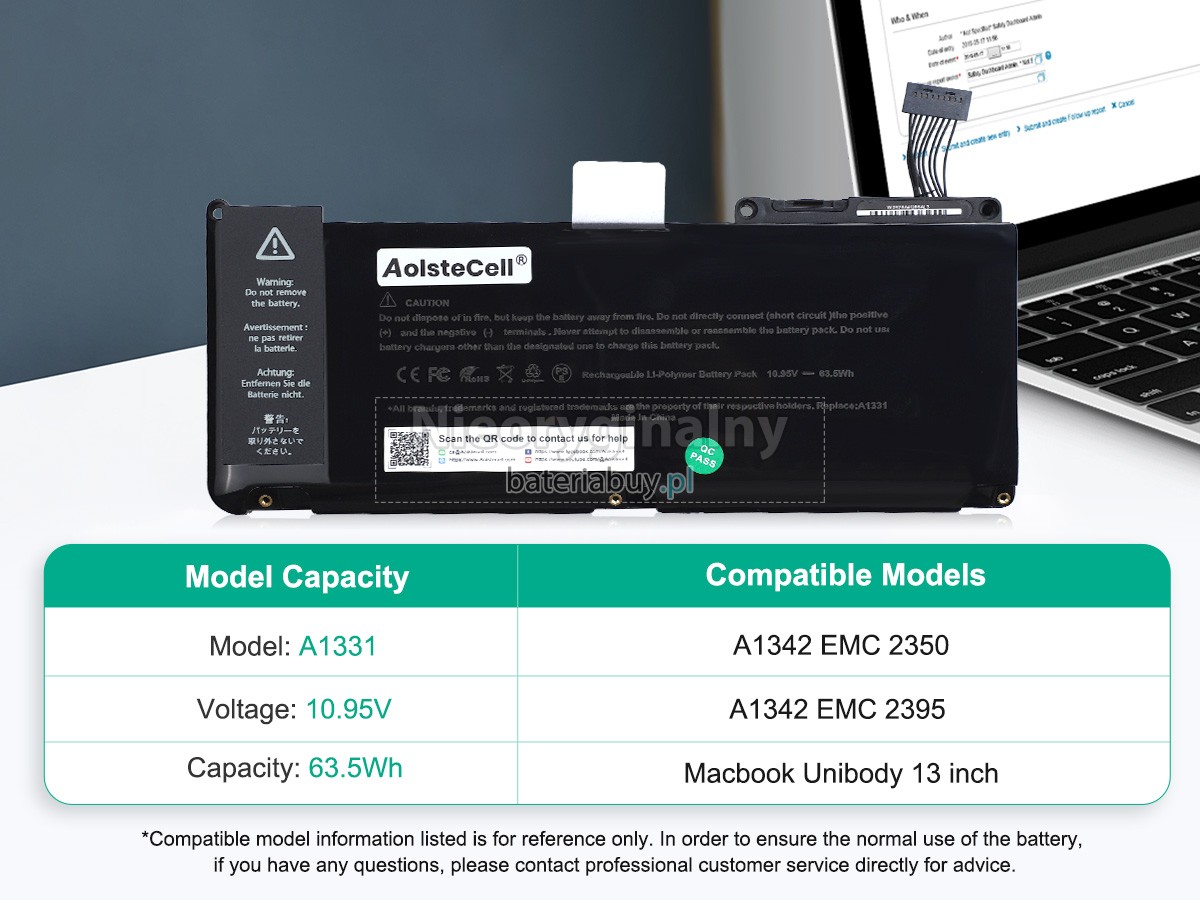 - Będziesz mógł kupić bateria do laptopa Apple MacBook Core 2 DUO 2.26GHZ 13.3 inch Unibody A1342(EMC 2350*) w najbardziej przystępnej cenie, zapewniamy roczną gwarancję i 30-dniową gwarancję zwrotu pieniędzy za baterię.