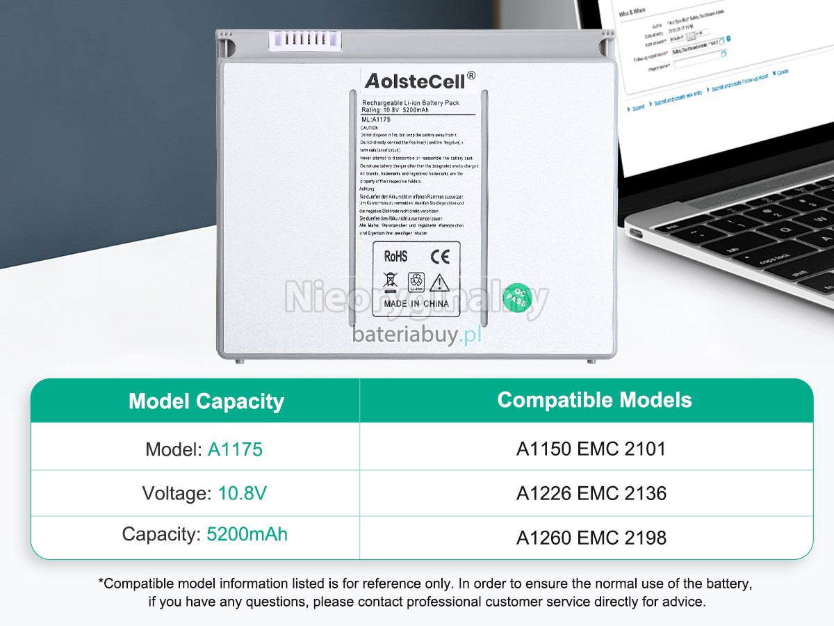 - Ta bateria do wymiany laptopów firmy Apple to nowy produkt (używany jako oryginalne akcesorium) i jest w 100% zgodny z laptopem.