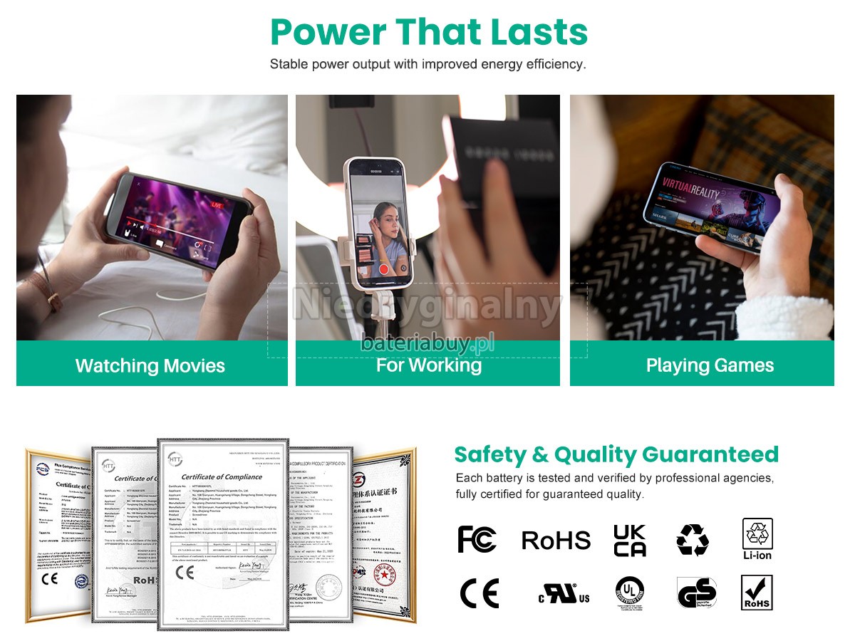 - Zamiennych baterii do laptopów spełnia lub przewyższa oryginalne specyfikacje OEM, a potężna bateria o rzeczywistej pojemności zapewnia wysoką jakość baterii.