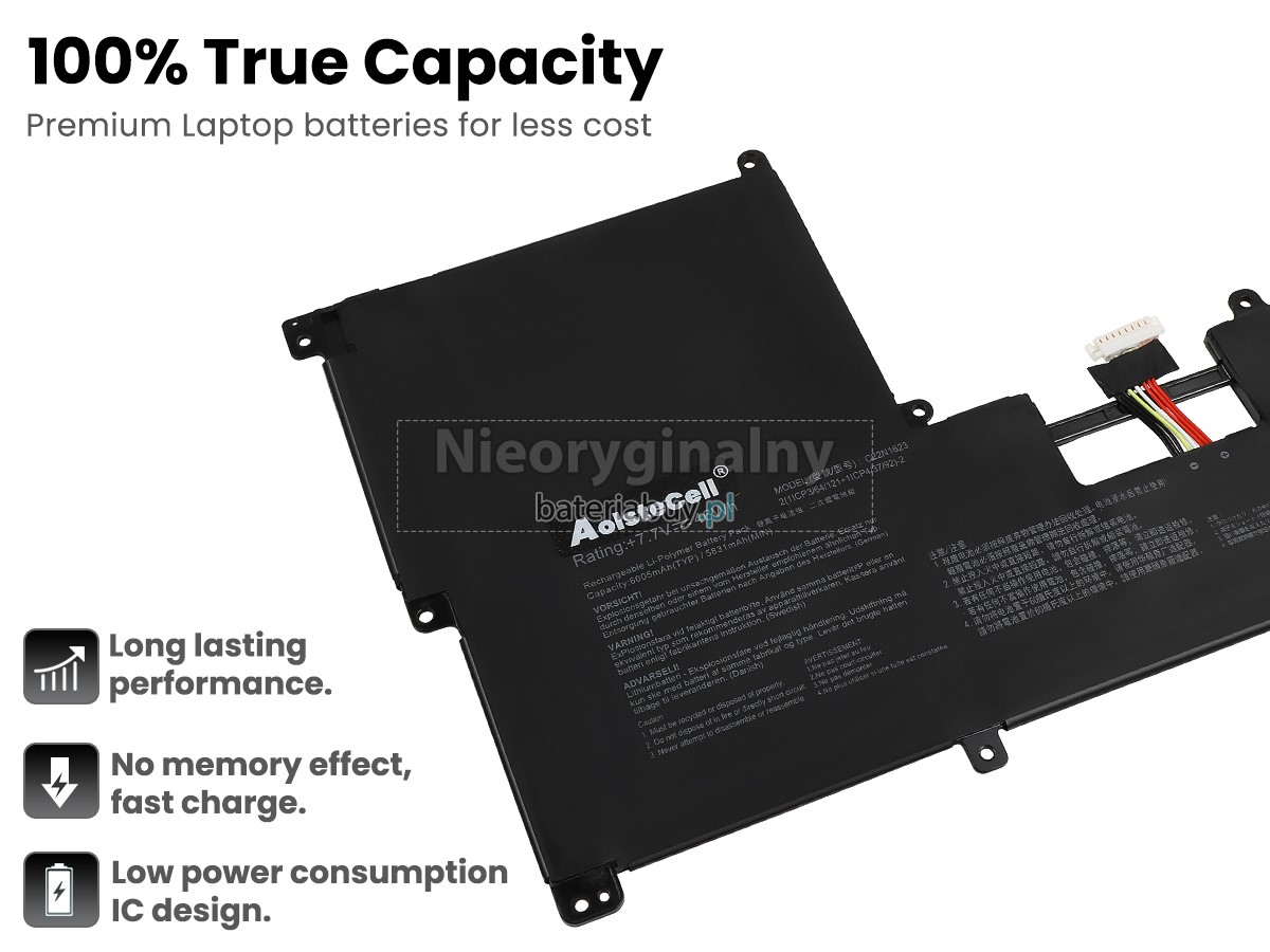 - Wymienna baterii w laptopie Asus 0B200-02400100 wykorzystuje najwyższej jakości akumulatory litowo-jonowe i komponenty do szybszego ładowania i dłuższej żywotności.