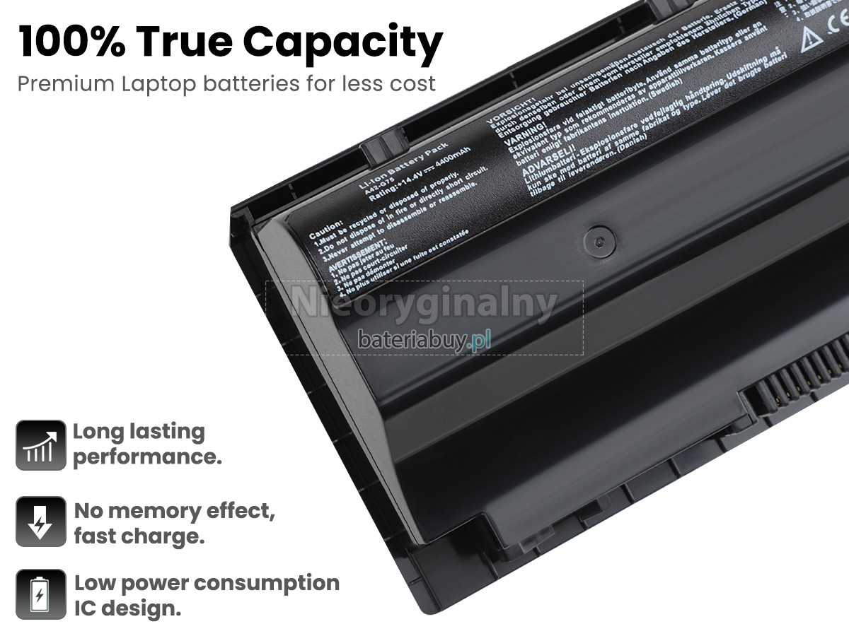 - Wymienna baterii w laptopie Asus A42-G75 wykorzystuje najwyższej jakości akumulatory litowo-jonowe i komponenty do szybszego ładowania i dłuższej żywotności.