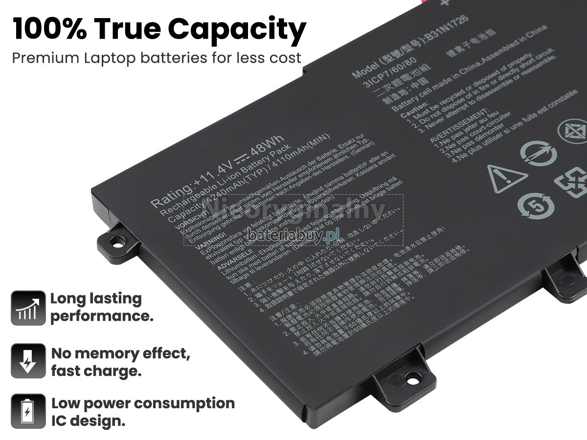 - Wymienna baterii w laptopie Asus B31N1726 wykorzystuje najwyższej jakości akumulatory litowo-jonowe i komponenty do szybszego ładowania i dłuższej żywotności.