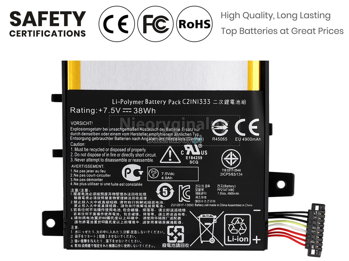 - Będziesz mógł kupić bateria do laptopa Asus C21N1333 w najbardziej przystępnej cenie, zapewniamy roczną gwarancję i 30-dniową gwarancję zwrotu pieniędzy za baterię.