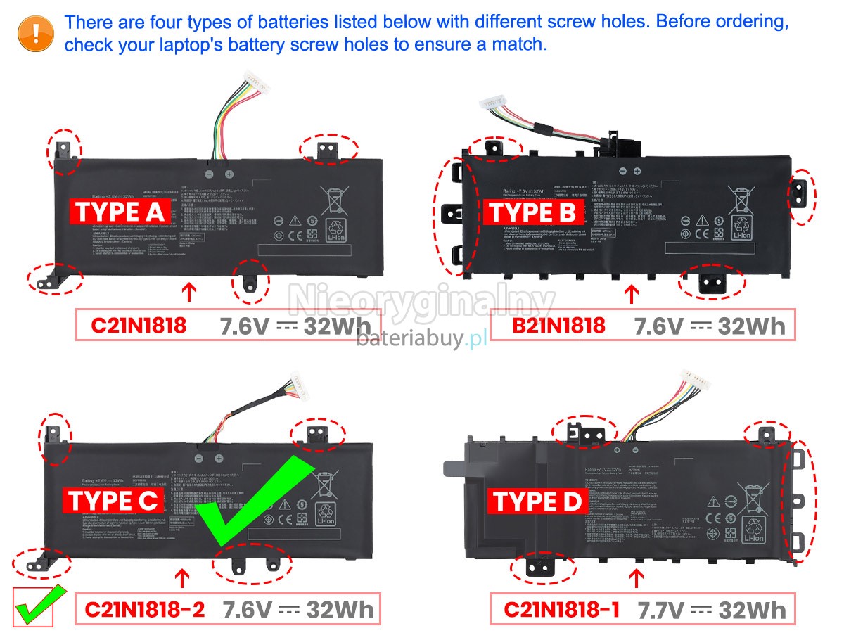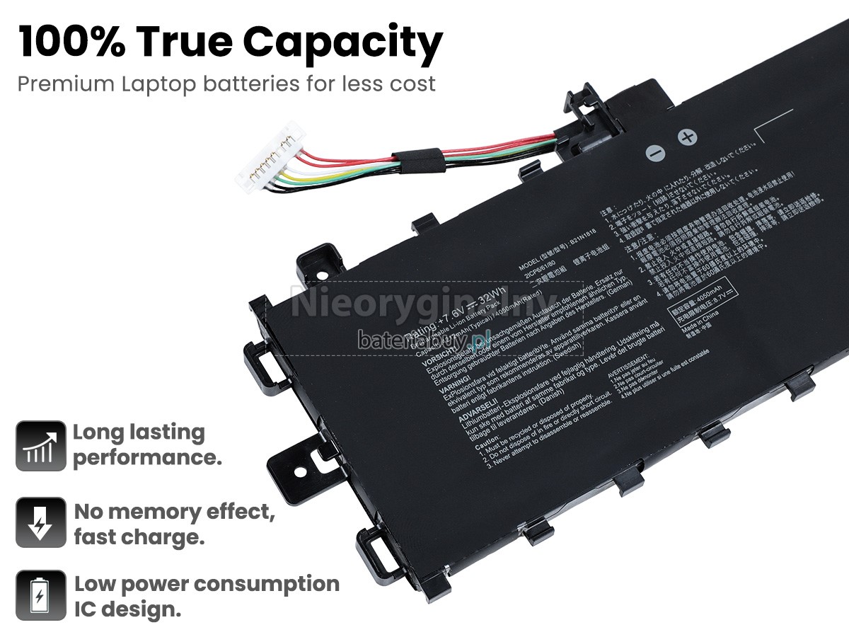 - Wymienna baterii w laptopie Asus C21N1818 wykorzystuje najwyższej jakości akumulatory litowo-jonowe i komponenty do szybszego ładowania i dłuższej żywotności.