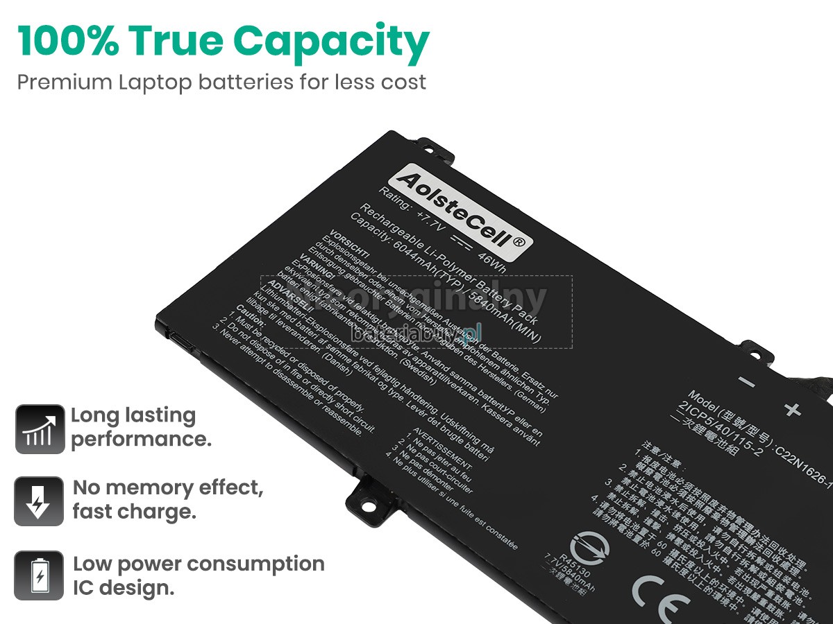 - Wymienna baterii w laptopie Asus C22N1626-1 wykorzystuje najwyższej jakości akumulatory litowo-jonowe i komponenty do szybszego ładowania i dłuższej żywotności.