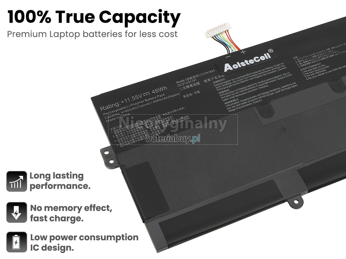 - Wymienna baterii w laptopie Asus Chromebook Flip C434TA-AI0045 wykorzystuje najwyższej jakości akumulatory litowo-jonowe i komponenty do szybszego ładowania i dłuższej żywotności.