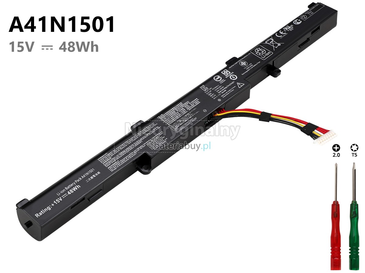 - Wymienna baterii w laptopie Asus GL752VW-GS71-HID7 wykorzystuje najwyższej jakości akumulatory litowo-jonowe i komponenty do szybszego ładowania i dłuższej żywotności.