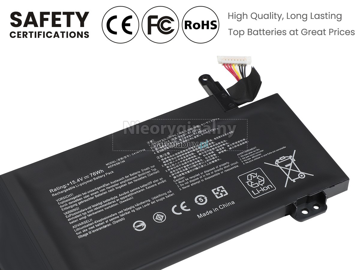 - Będziesz mógł kupić bateria do laptopa Asus Rog STRIX GL703GM-E5016T w najbardziej przystępnej cenie, zapewniamy roczną gwarancję i 30-dniową gwarancję zwrotu pieniędzy za baterię.