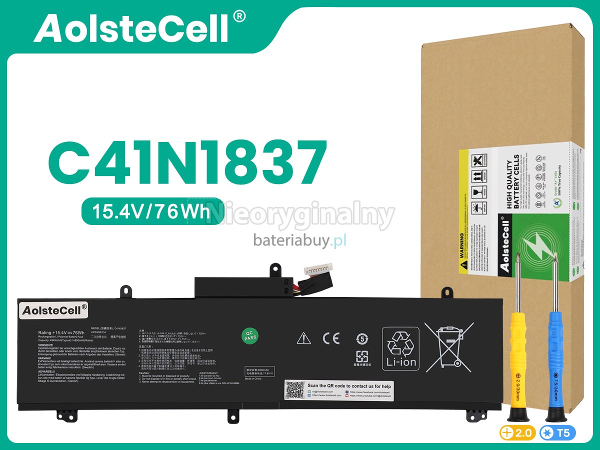 - Wymienna baterii w laptopie Asus Rog ZEPHYRUS GA532DU wykorzystuje najwyższej jakości akumulatory litowo-jonowe i komponenty do szybszego ładowania i dłuższej żywotności.