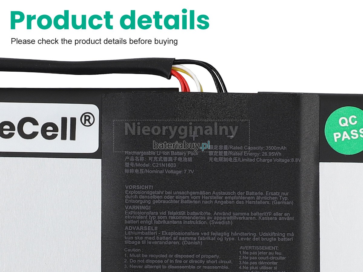 - Ta bateria do wymiany laptopów firmy Asus to nowy produkt (używany jako oryginalne akcesorium) i jest w 100% zgodny z laptopem.