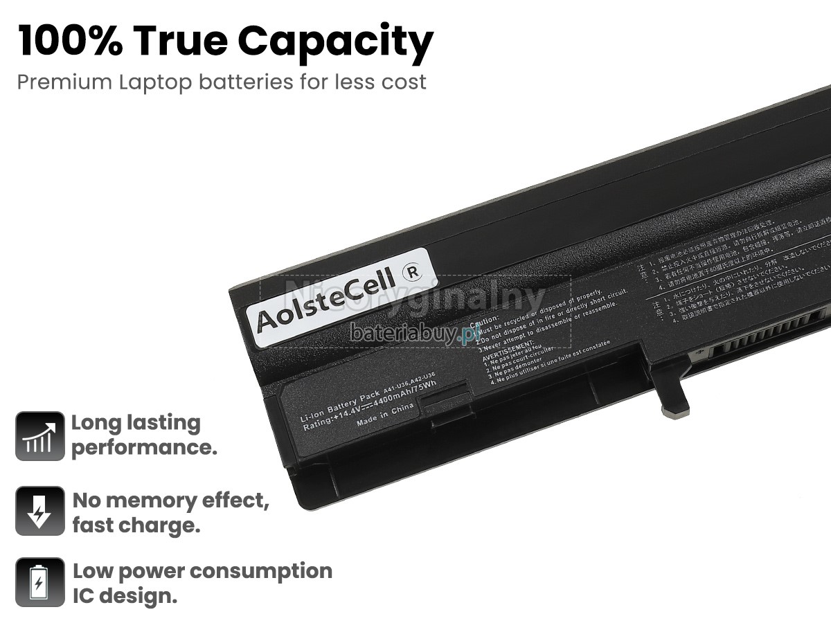 - Wymienna baterii w laptopie Asus U36JC-A1 wykorzystuje najwyższej jakości akumulatory litowo-jonowe i komponenty do szybszego ładowania i dłuższej żywotności.