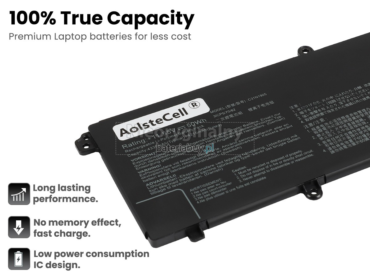 - Wymienna baterii w laptopie Asus VivoBook 14 A413FA wykorzystuje najwyższej jakości akumulatory litowo-jonowe i komponenty do szybszego ładowania i dłuższej żywotności.