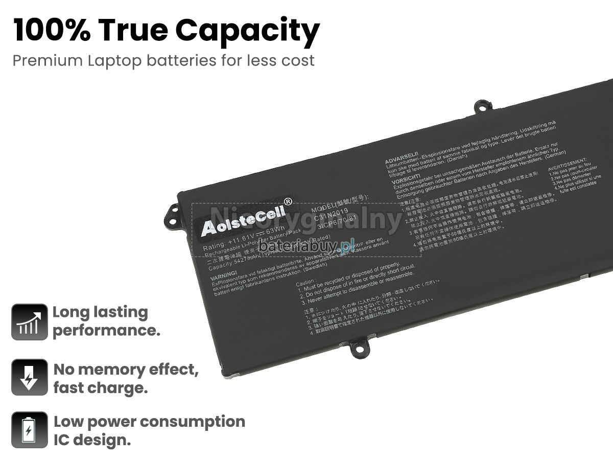 - Wymienna baterii w laptopie Asus VivoBook Pro 14X OLED N7400QE-KM031W wykorzystuje najwyższej jakości akumulatory litowo-jonowe i komponenty do szybszego ładowania i dłuższej żywotności.