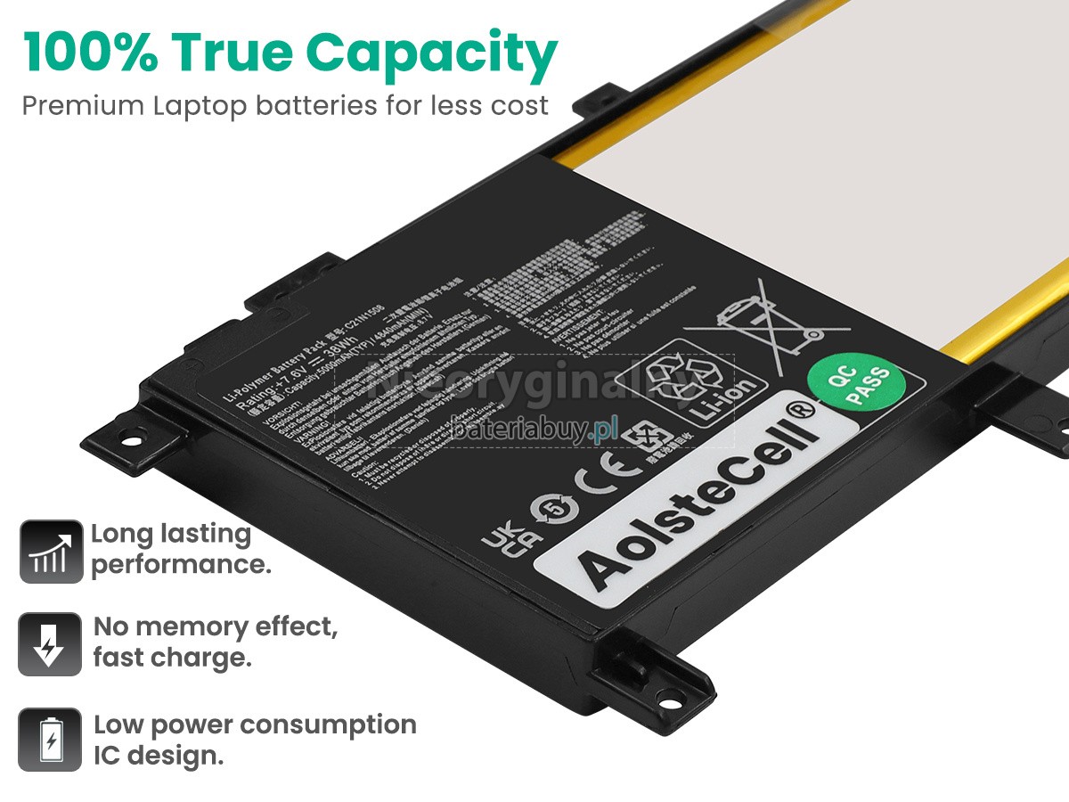- Wymienna baterii w laptopie Asus VivoBook X456UR wykorzystuje najwyższej jakości akumulatory litowo-jonowe i komponenty do szybszego ładowania i dłuższej żywotności.