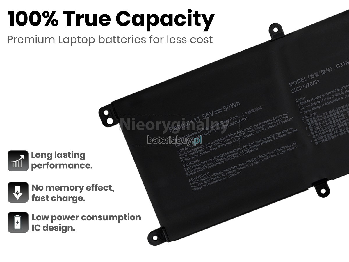 - Ta bateria do wymiany laptopów firmy Asus to nowy produkt (używany jako oryginalne akcesorium) i jest w 100% zgodny z laptopem.