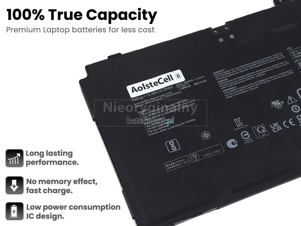 - Wymienna baterii w laptopie Asus ZenBook UX9702AA-FOLED-MD731X wykorzystuje najwyższej jakości akumulatory litowo-jonowe i komponenty do szybszego ładowania i dłuższej żywotności.