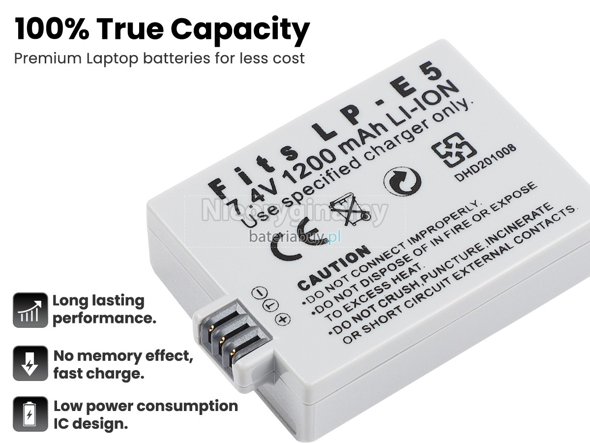 - Obudowa baterii wykonana jest z wysokiej jakości tworzywa sztucznego, które idealnie dopasowuje się do urządzenia Canon.