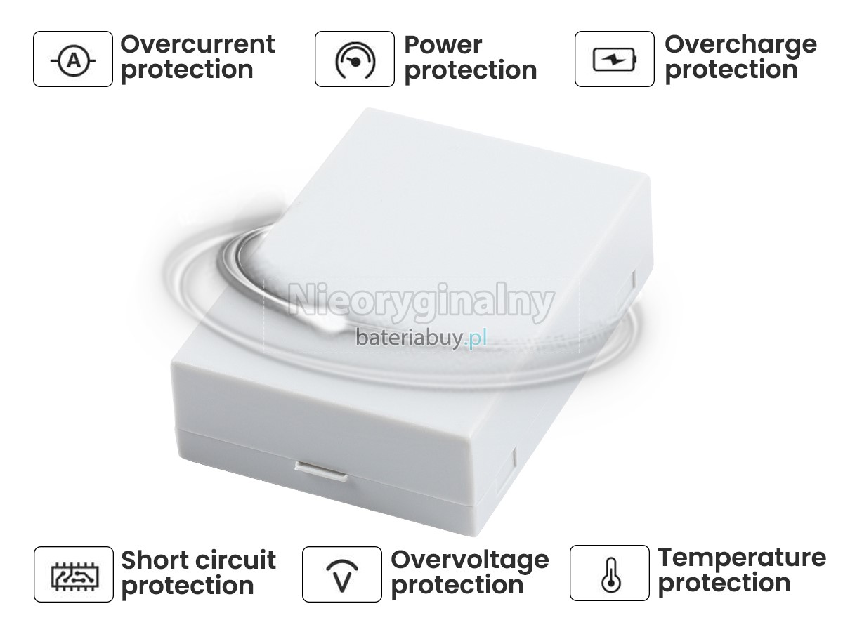 - Obudowa baterii wykonana jest z wysokiej jakości tworzywa sztucznego, które idealnie dopasowuje się do urządzenia Canon.