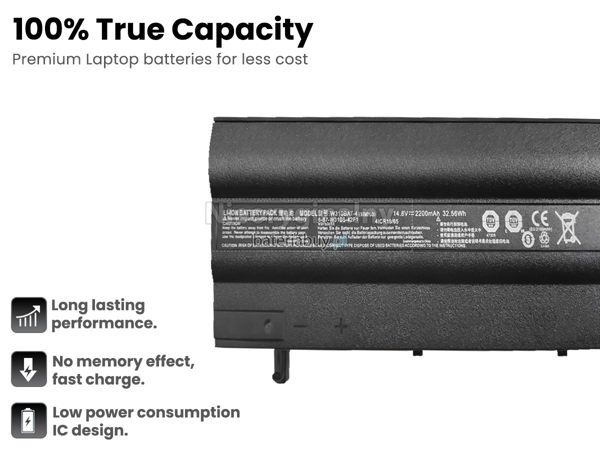- Wymienna baterii w laptopie Clevo 6-87-W310S-42F wykorzystuje najwyższej jakości akumulatory litowo-jonowe i komponenty do szybszego ładowania i dłuższej żywotności.