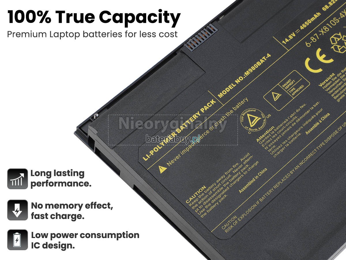 - Wymienna baterii w laptopie Clevo M980NU wykorzystuje najwyższej jakości akumulatory litowo-jonowe i komponenty do szybszego ładowania i dłuższej żywotności.