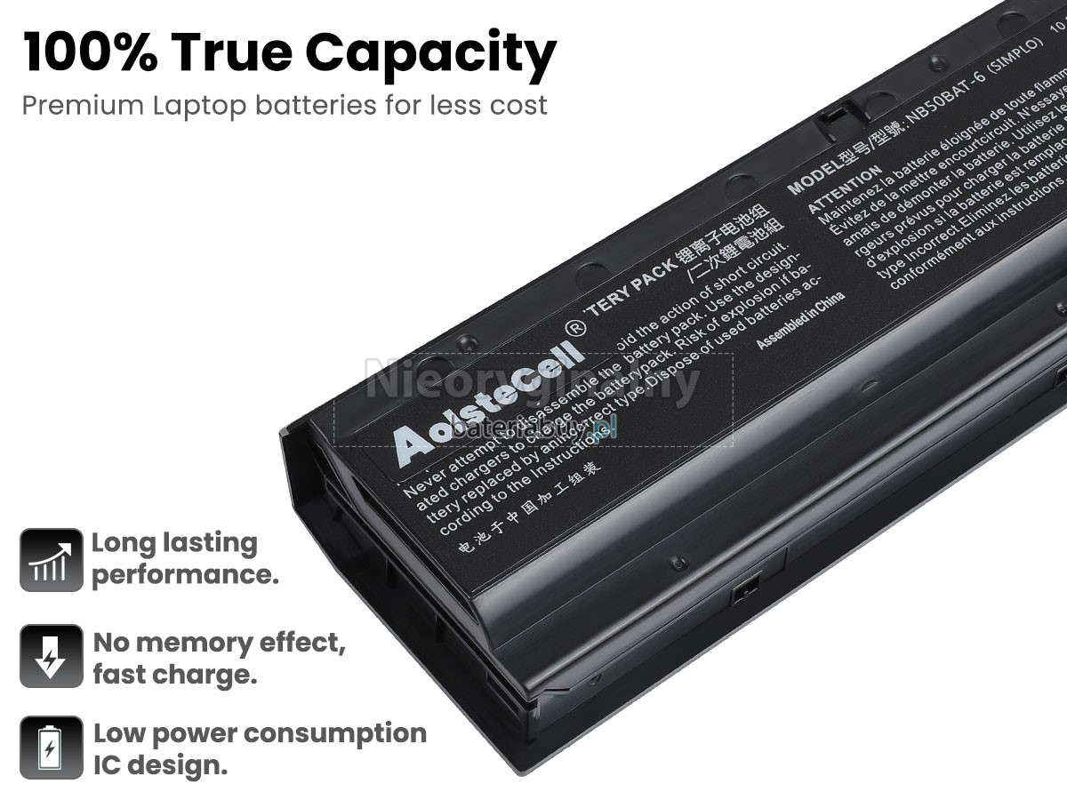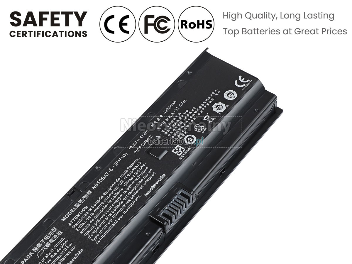 - Wymienna baterii w laptopie Clevo NB50TJ1 wykorzystuje najwyższej jakości akumulatory litowo-jonowe i komponenty do szybszego ładowania i dłuższej żywotności.