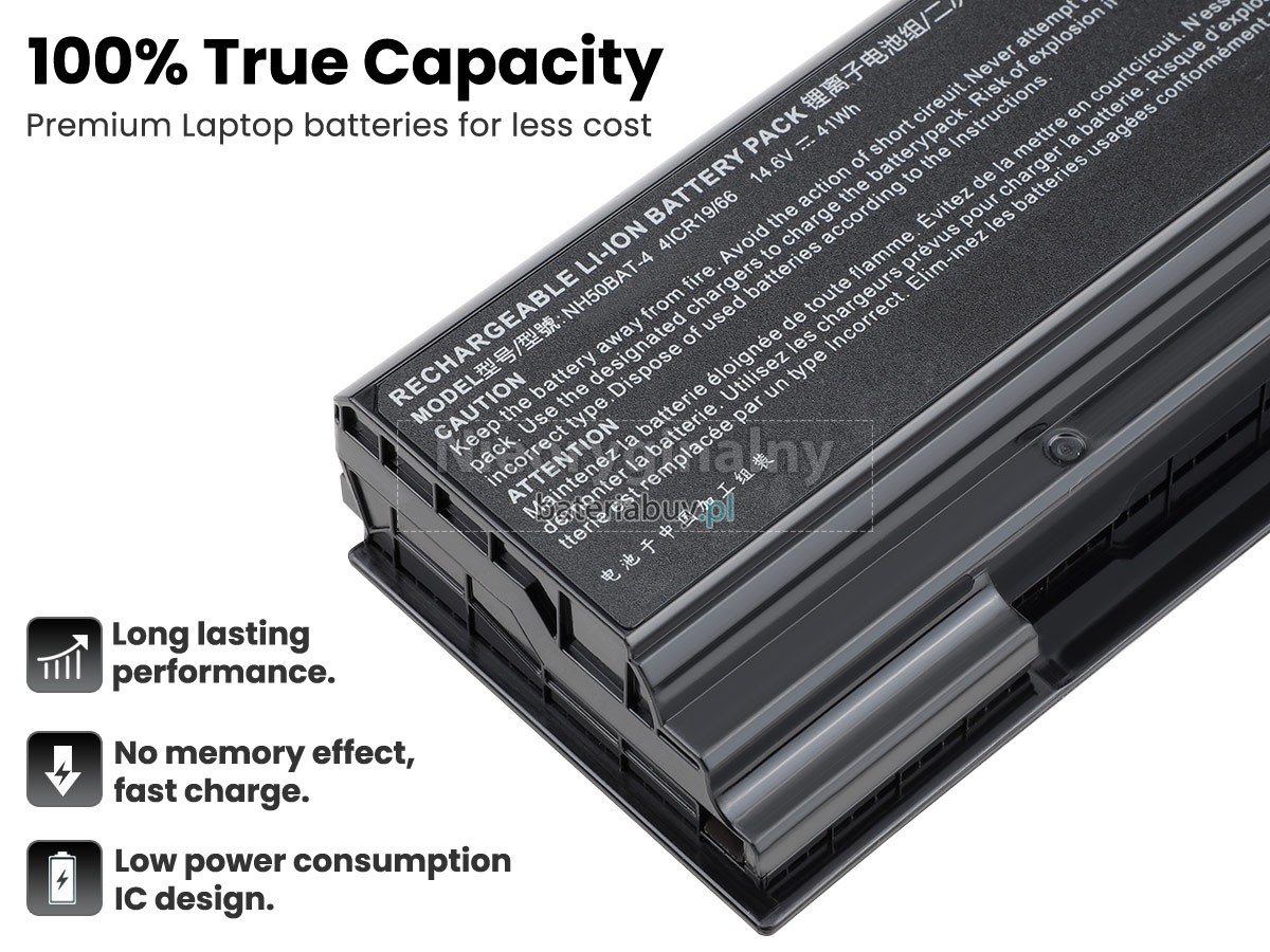 - Wymienna baterii w laptopie Clevo NH58EDQ wykorzystuje najwyższej jakości akumulatory litowo-jonowe i komponenty do szybszego ładowania i dłuższej żywotności.