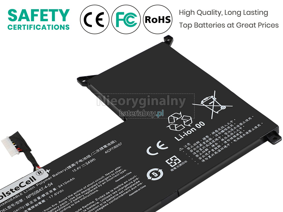 - Będziesz mógł kupić bateria do laptopa Clevo NP50BAT-4-54 w najbardziej przystępnej cenie, zapewniamy roczną gwarancję i 30-dniową gwarancję zwrotu pieniędzy za baterię.