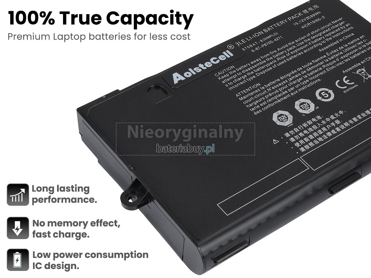 - Wymienna baterii w laptopie Clevo P870DM3-G wykorzystuje najwyższej jakości akumulatory litowo-jonowe i komponenty do szybszego ładowania i dłuższej żywotności.