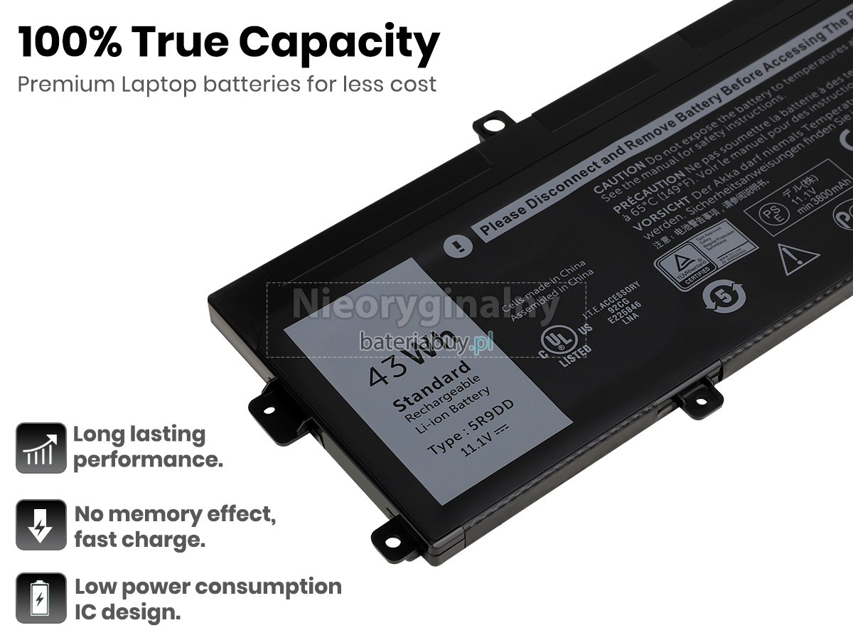 - Wymienna baterii w laptopie Dell 5R9DD wykorzystuje najwyższej jakości akumulatory litowo-jonowe i komponenty do szybszego ładowania i dłuższej żywotności.