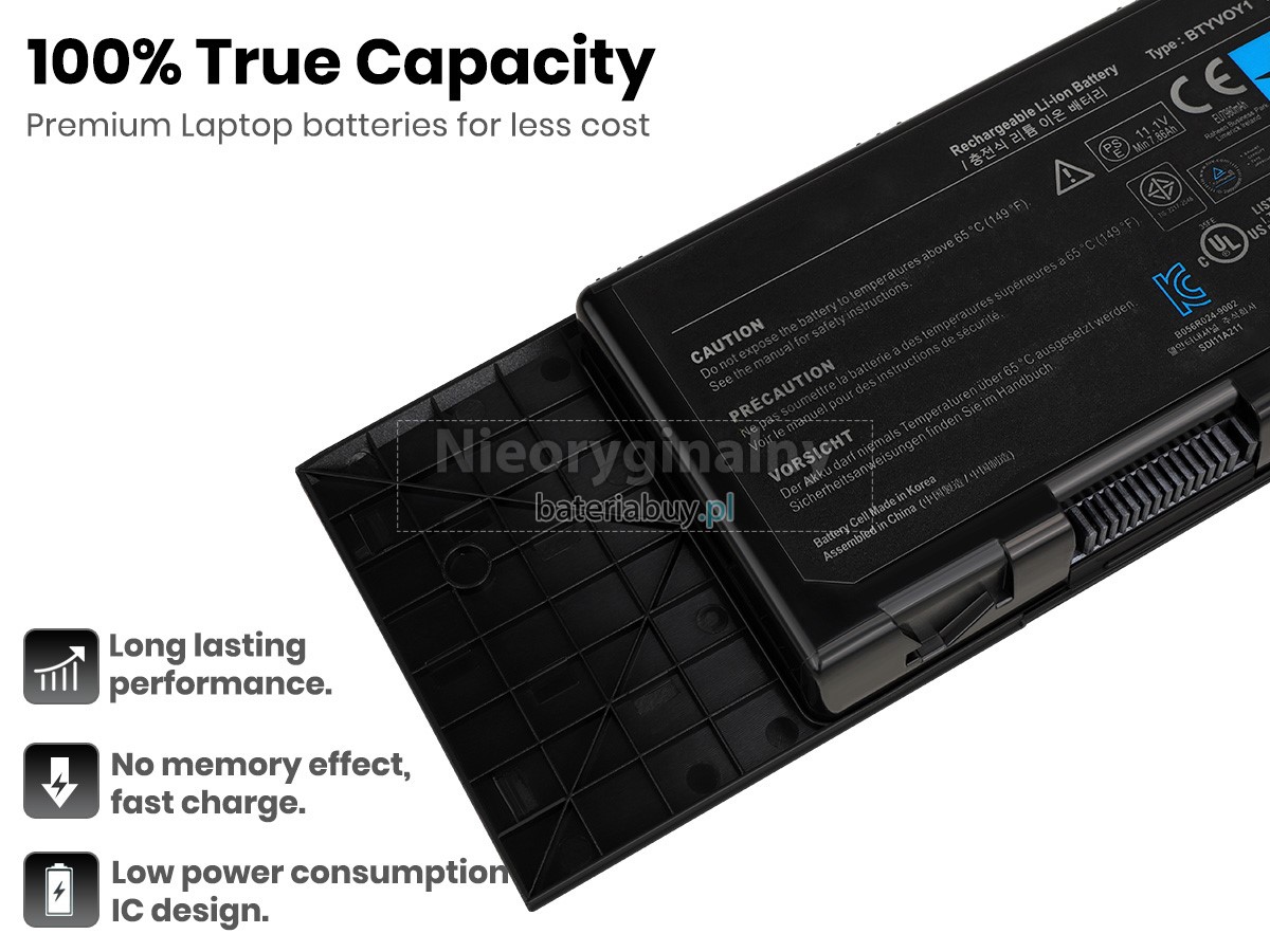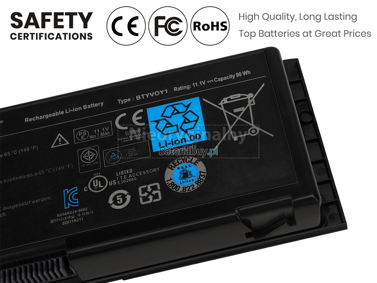 - Wymienna baterii w laptopie Dell Alienware M17X R3 wykorzystuje najwyższej jakości akumulatory litowo-jonowe i komponenty do szybszego ładowania i dłuższej żywotności.