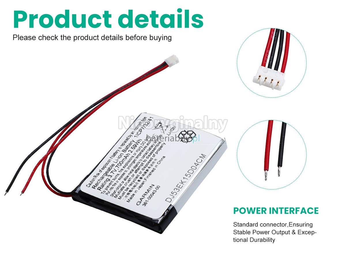 - Obudowa baterii wykonana jest z wysokiej jakości tworzywa sztucznego, które idealnie dopasowuje się do urządzenia Garmin.