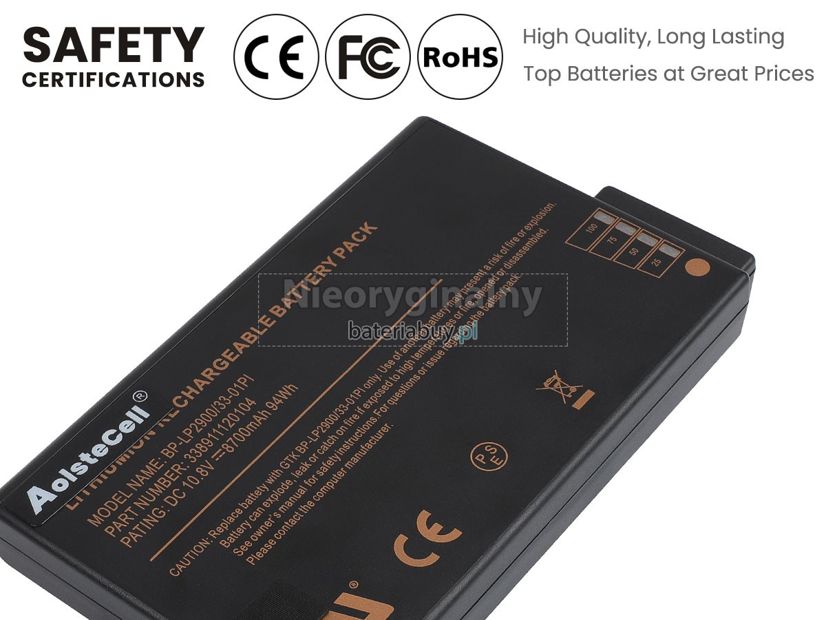 - Pojemnik na baterie wykonany jest z najwyższej jakości tworzywa sztucznego i pasuje idealnie, więc możemy się upewnić, że pasuje on do laptopa Getac.