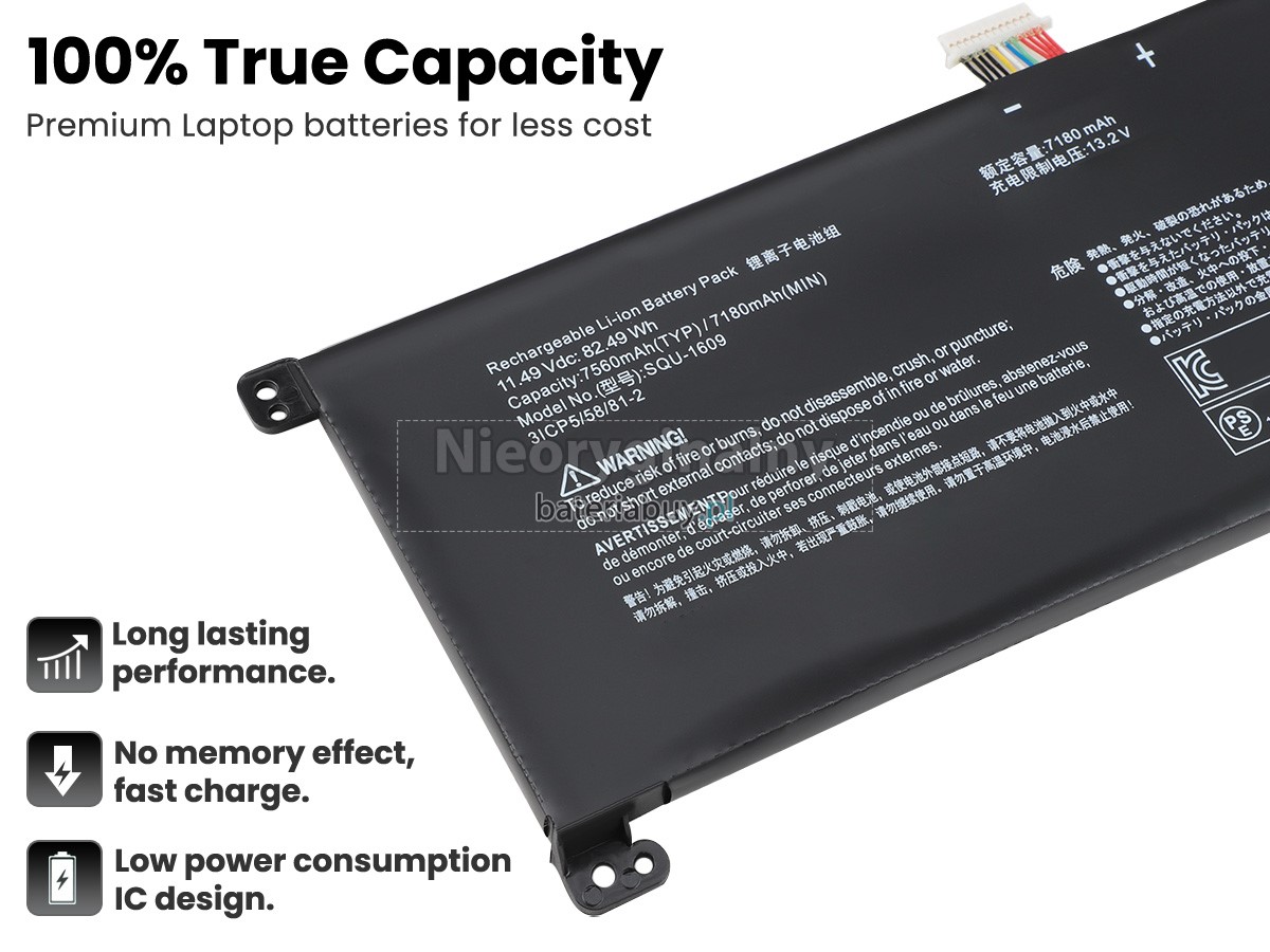 - Wymienna baterii w laptopie Hasee SQU-1710 wykorzystuje najwyższej jakości akumulatory litowo-jonowe i komponenty do szybszego ładowania i dłuższej żywotności.