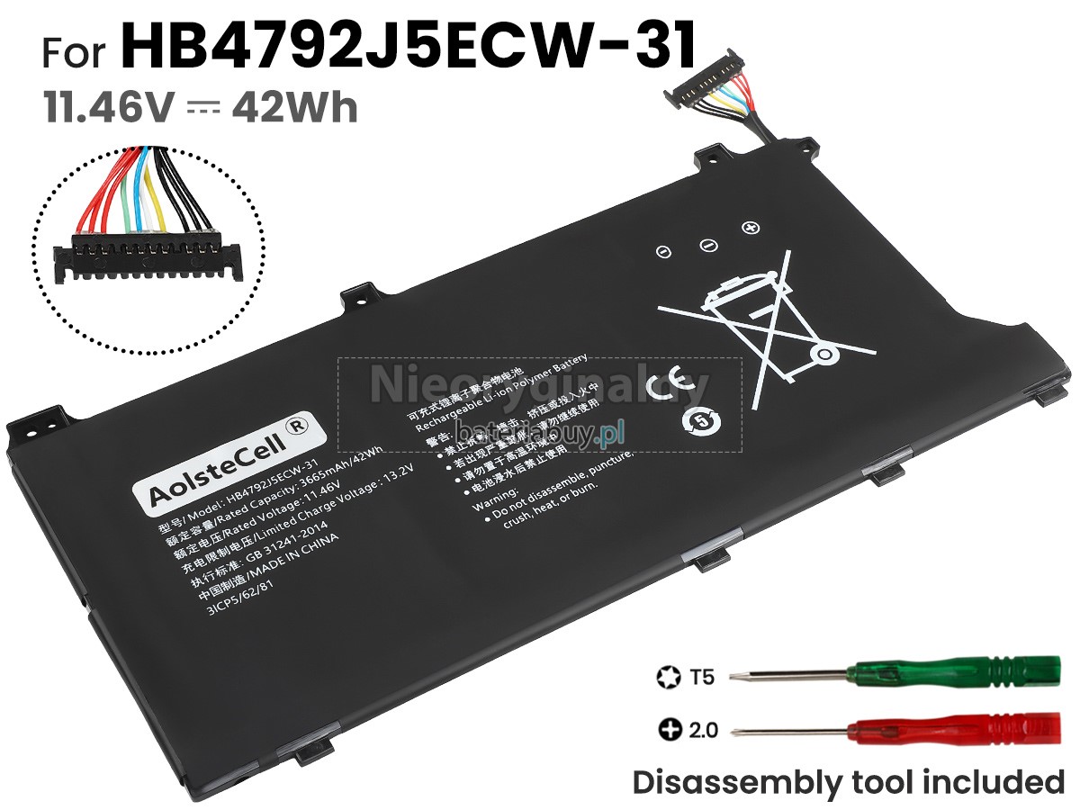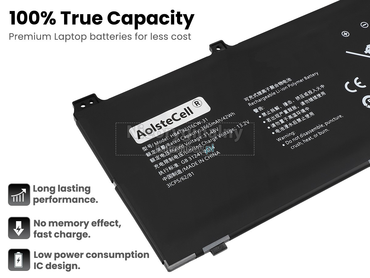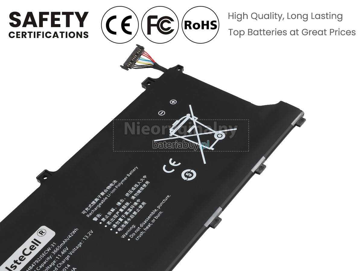 - Wymienna baterii w laptopie Huawei HB4792J5ECW-31 wykorzystuje najwyższej jakości akumulatory litowo-jonowe i komponenty do szybszego ładowania i dłuższej żywotności.