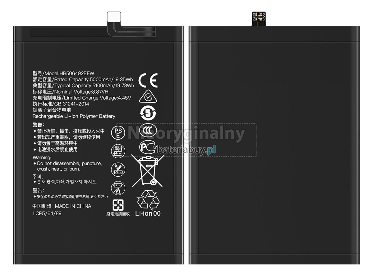 - Bateria do urządzenia Huawei HB506492EFW to w pełni kompatybilny zamiennik, wykonany z wysokiej jakości ogniw litowo-jonowych, które zapewniają stabilną pracę i długą żywotność.