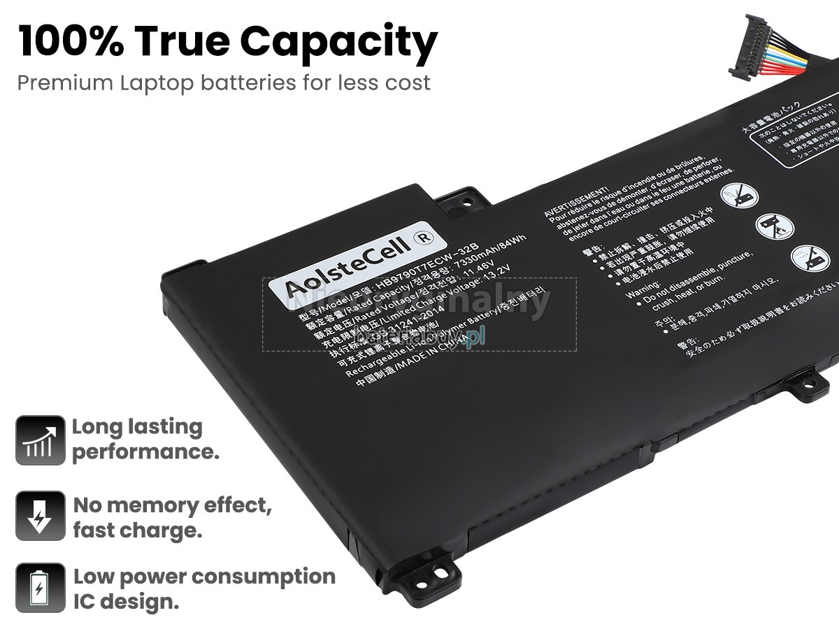 - Wymienna baterii w laptopie Huawei HB9790T7ECW-32B wykorzystuje najwyższej jakości akumulatory litowo-jonowe i komponenty do szybszego ładowania i dłuższej żywotności.