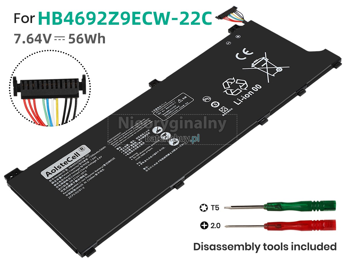 - Pojemnik na baterie wykonany jest z najwyższej jakości tworzywa sztucznego i pasuje idealnie, więc możemy się upewnić, że pasuje on do laptopa Huawei.