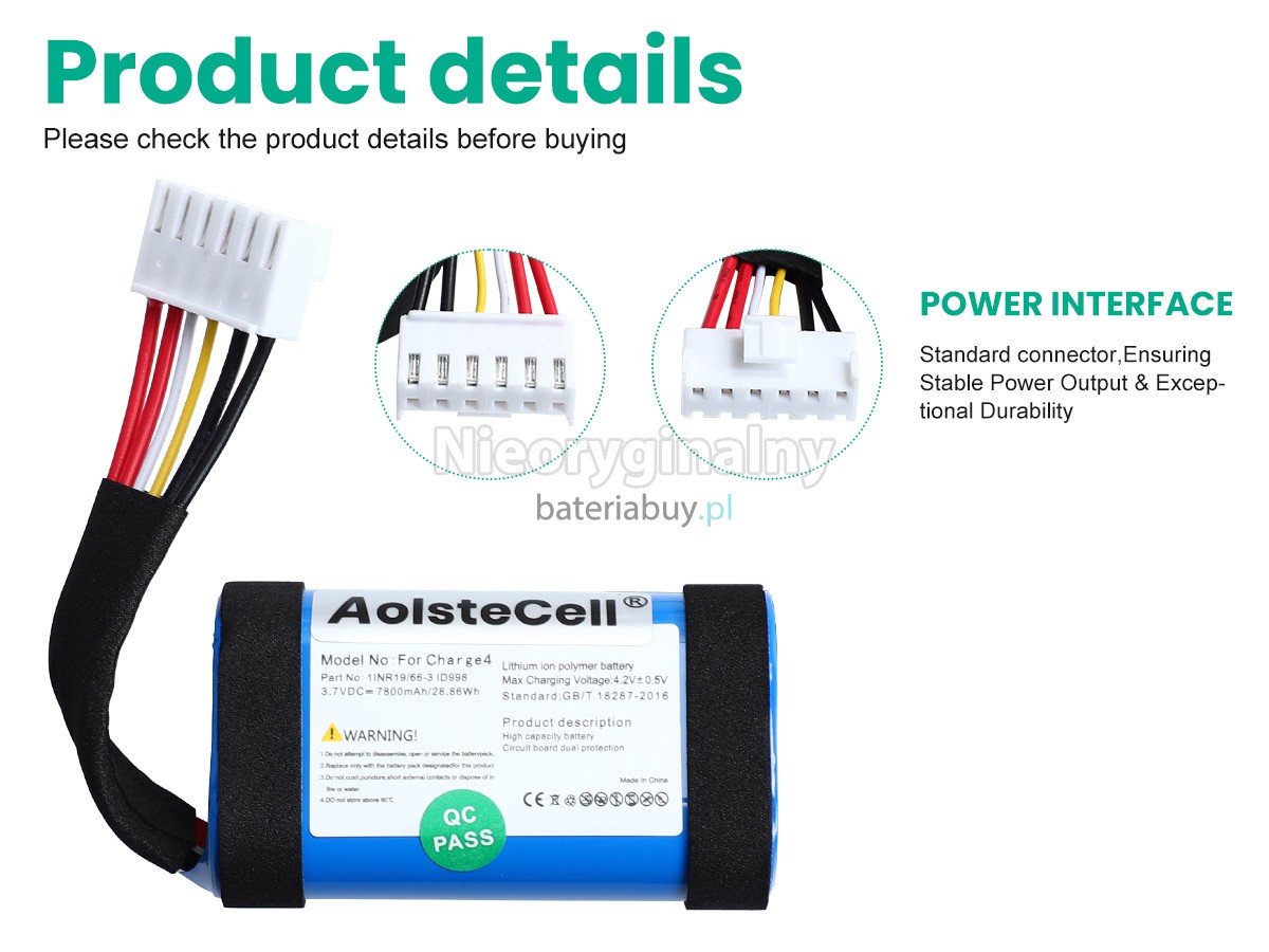 - Możesz kupić bateria do głośnika JBL CHARGE 4 w najbardziej przystępnej cenie, zapewniamy roczną gwarancję oraz 30-dniową gwarancję zwrotu pieniędzy.