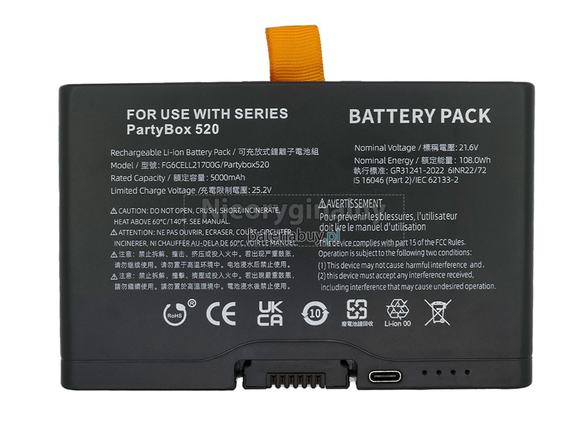 - Możesz kupić bateria do głośnika JBL FG6CELL21700G w najbardziej przystępnej cenie, zapewniamy roczną gwarancję oraz 30-dniową gwarancję zwrotu pieniędzy.