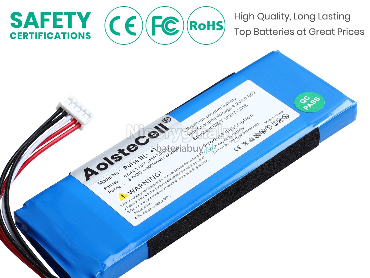 - Każda bateria przechodzi rygorystyczne testy jakości i kompatybilności, dzięki czemu jest w 100% dopasowana do modeli JBL PULSE 2 i działa bezproblemowo z Twoim głośnikiem.