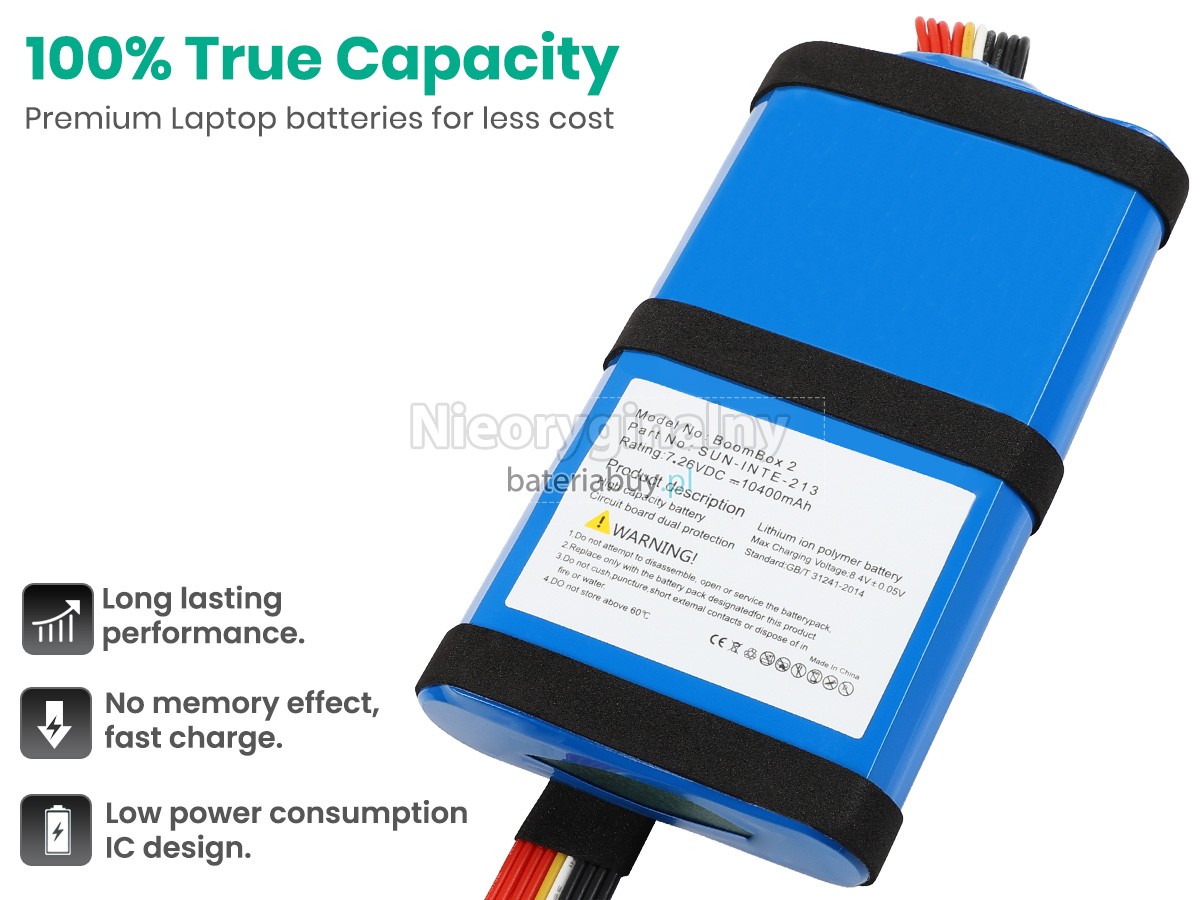 - Ta bateria do wymiany firmy JBL jest nowym produktem (stosowanym jako oryginalne akcesorium) i jest w 100% zgodna z Twoim głośnikiem.