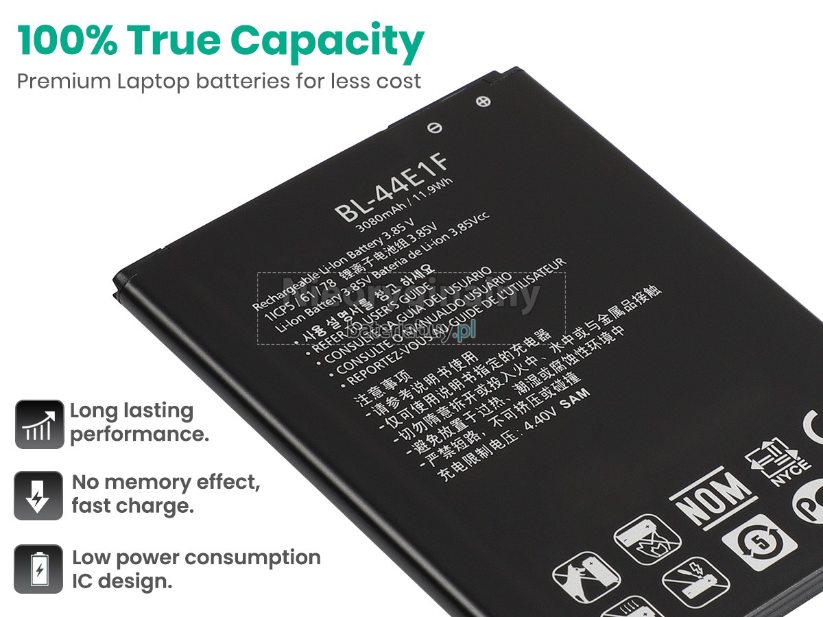 - Wymienna bateria LG BL-44E1F wykorzystuje najwyższej jakości ogniwa litowo-jonowe i komponenty, zapewniając szybsze ładowanie oraz dłuższą żywotność.